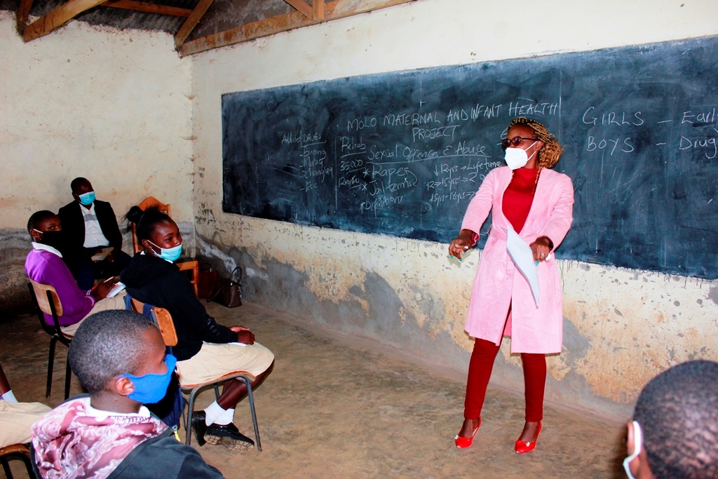 St. Francis Moto Hope Dispensary Team and Molo Maternal and Child Health Program’s Community Health Volunteers conduct teenage mentorship for Mona Secondary students (2/12/2020) to train on: Early pregnancy (Causes and Prevention), Peer education (Drug abuse and peer influence), Sexual Offences and Abuse, Reproductive Health (Menstrual hygiene) and Covid-19 awareness.