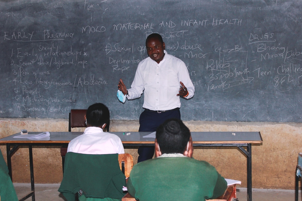 St. Francis Moto Hope Dispensary Team and Molo Maternal and Child Health Program’s Community Health Volunteers conduct teenage mentorship for Moto Secondary students (4/12/2020) to train on: Early pregnancy (Causes and Prevention), Peer education (Drug abuse and peer influence), Sexual Offences and Abuse, Reproductive Health (Menstrual hygiene) and Covid-19 awareness.