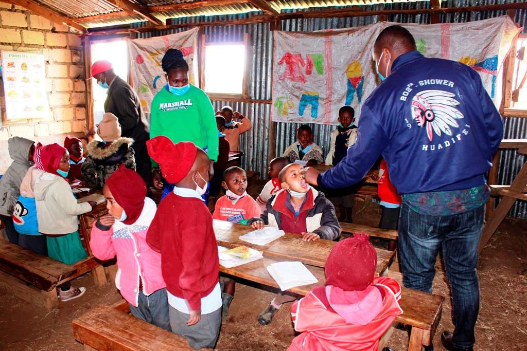 A total of 208 Under five-year-old children from Mona Village (St. George ECDE, Mona Primary, Michatha ECD, Hill View ECD, and Gathigi Primary School) were on 17th June 2021 de-wormed and given Vitamin C tablets in the Molo Maternal and Child Health Program’s Medical Outreach. Special thanks to those who make The Molo Maternal & Child Health Program possible: Rotary International, Rotary Club of Kelowna, Canada, Rotary Club of Ruiru, Kenya, and St. Francis Moto Hope Dispensary, Molo.